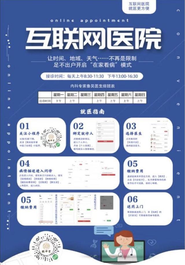 为更好地服务广大市民问诊,长春市南关区致中堂中医门诊部途阳互联网医院根据当前疫情防控优化调整阶段情况,大力开展互联网诊疗+活动,让患者通过手机,足不出户便能得到医生及时在线诊疗。同时,医院配备快递服务功能,通过线上线下一站式服务,确保将药品第一时间送达患者手中。