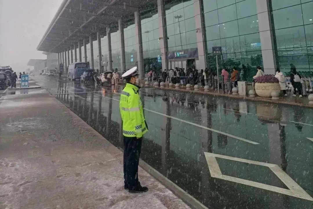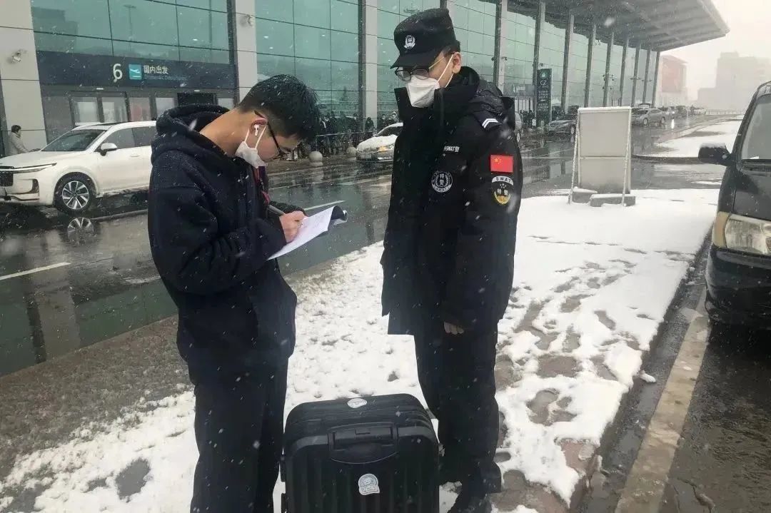 机场分局交警大队民警坚守岗位,全力保障大学生安全离连;巡特警大队民警帮助即将离连的大学生及时找回遗落在出租车上的行李。