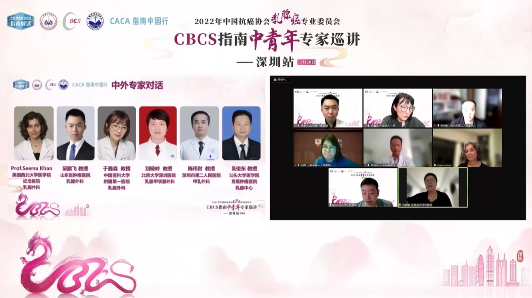 在朱丽教授的主持下,Seema Khan教授、山东省肿瘤医院邱鹏飞教授、中国医科大学附属第一医院于鑫淼教授、北京大学深圳医院刘晓岭教授、深圳市第二人民医院陈伟财教授、汕头大学医学院附属肿瘤医院吴俊东教授共同参与中外专家对话环节,围绕乳腺癌外科治疗的临床实践热点问题交流了以下意见与心得: