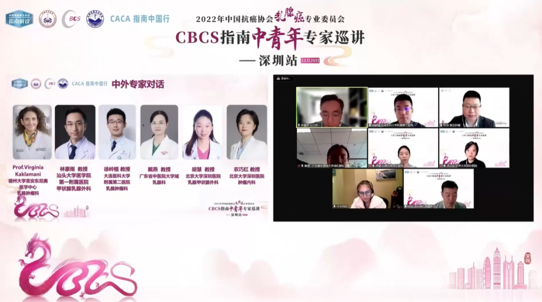 在张剑教授的主持下,Virginia Kaklamani教授、汕头大学医学院第一附属医院林豪雨教授、大连医科大学附属第二医院徐岭植教授、广东省中医院戴燕教授、北京大学深圳医院胡慧教授、北京大学深圳医院农巧红教授参与中外专家对话环节,围绕上述5个问题展开激烈讨论,形成以下观点: