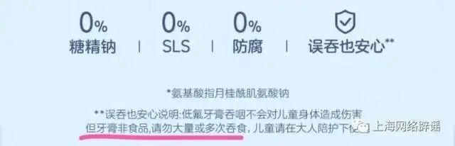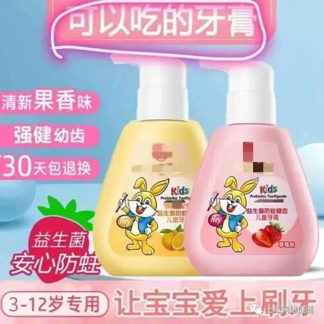 网络平台上有大量儿童牙膏标注“可吞咽”。