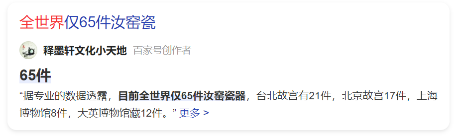 即使现代汝瓷,在网上随便一搜,光一只茶杯都要卖到好几百,且不能保证窑口正宗。