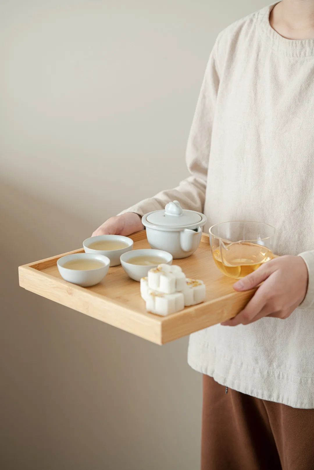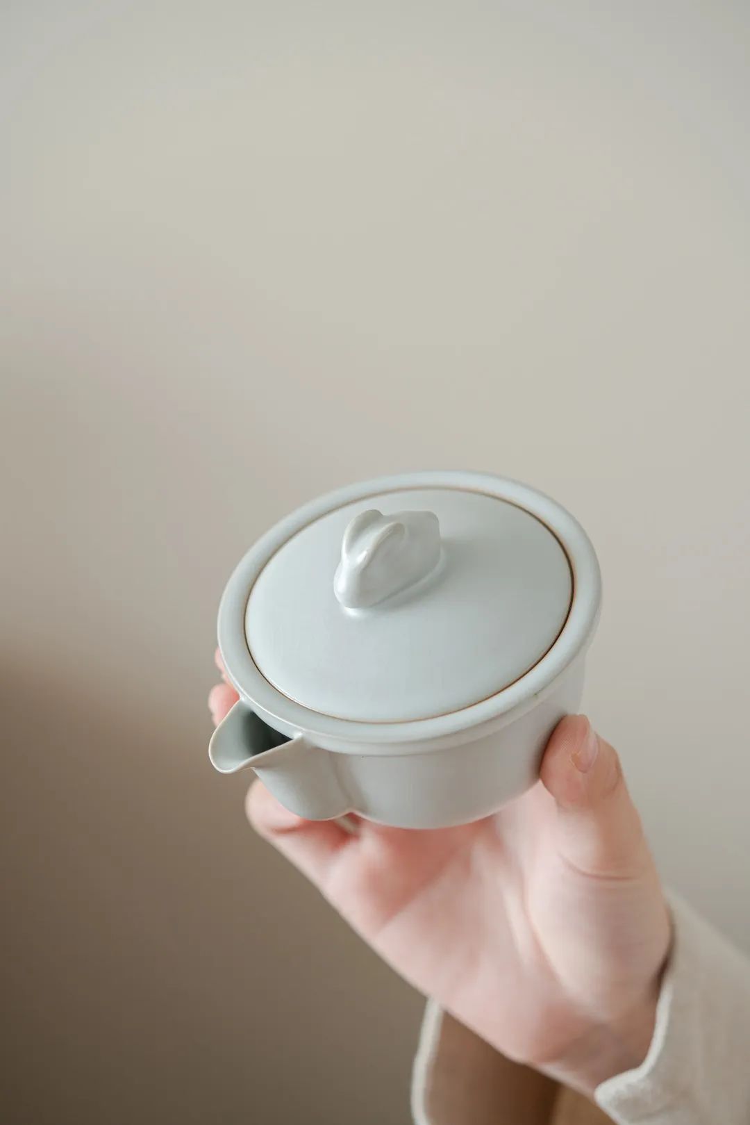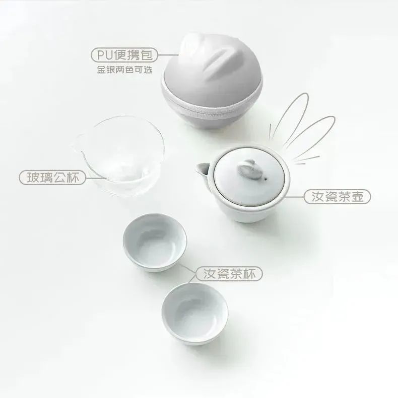 兔子便携茶具层层堆叠易收纳,杯盖上一只憨萌小兔,颜值拉满,汝瓷的月白釉色让整套茶具外观如月光般柔和,传统汝瓷工艺加上现代设计,实用又耐看。