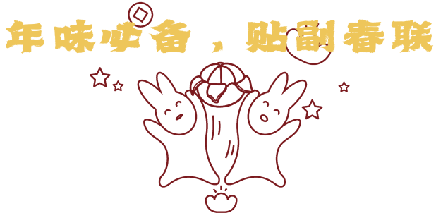 过年怎么能少了春联呢?包含着美好寓意的兔年对联一贴,过年的氛围立马就有了。小巧对联随手贴,吉字方贴贴大门,家里福气满满,兔个吉利。