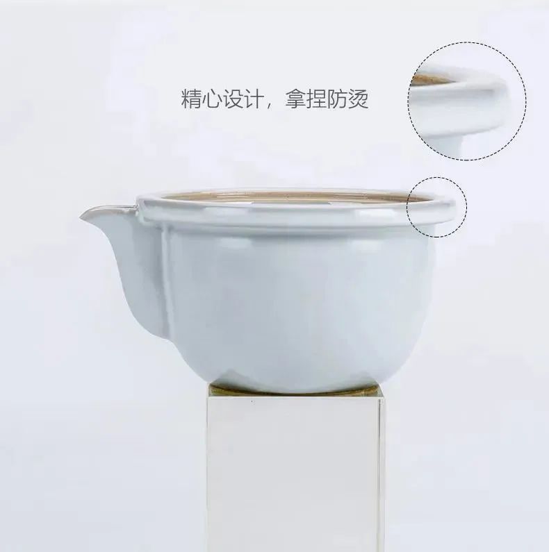茶具采用传统汝瓷制作工艺,采用宋徽宗挚爱的经典天青色与月白色,从釉色到弧度,都通过细细考量,出水流畅而不烫手,暖心陪伴你大展宏图的每一刻。