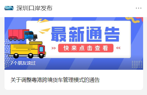 12月11日,深圳市人民政府口岸办公室发布通告,调整粤港跨境货车管理模式。