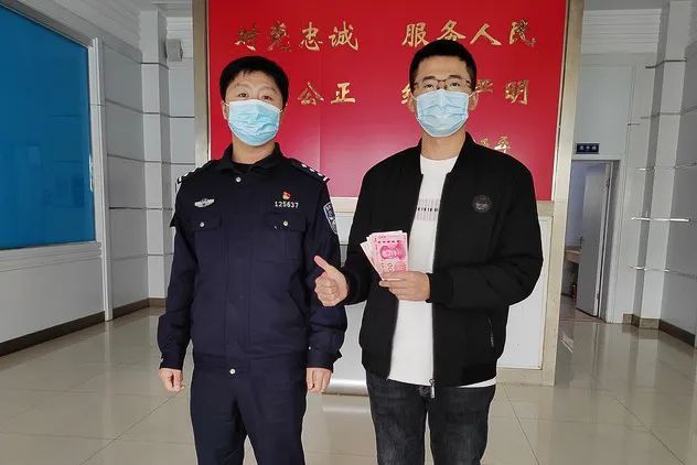 11月21日,市民王先生在芝罘区三马路捡到一个信封,内装有人民币一万元,为寻找失主,王先生立即报警。值班民警了解情况后,对王先生的拾金不昧行为高度赞扬,并立即赶往现场。由于遗失信封所在位置恰好处于监控死角,后经大量走访调查,终于找到失主陶女士,并将现金返还。11月29日,陶女士家人来到派出所,为王先生及民警送来一面锦旗表示感谢。