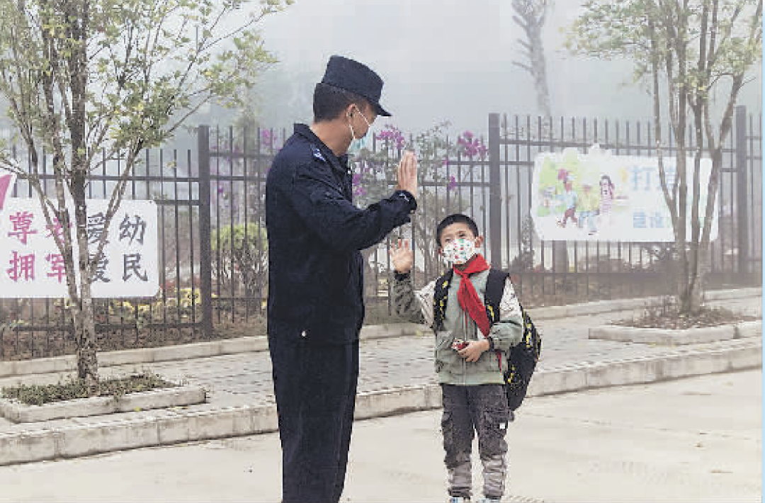 11月25日,在云南省文山州马关县茅坪村,余永顺遇到放学回家的小学生,向小学生询问学习、校园安全等情况。交谈片刻,两人挥手道别。 赵黎浩 摄