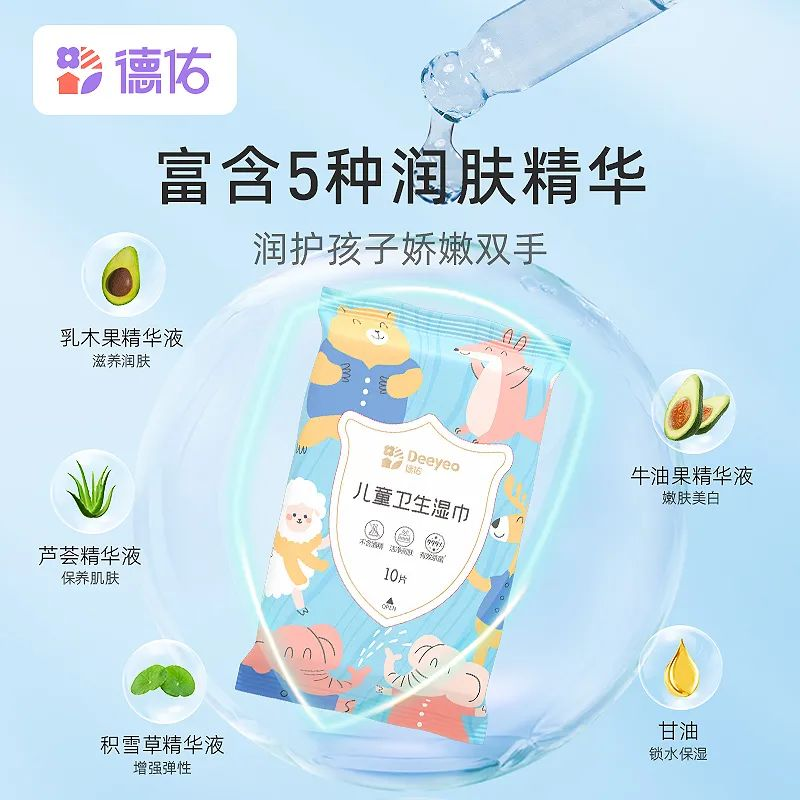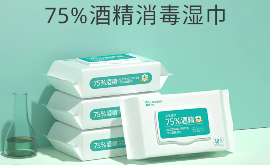 德佑的这款酒精湿巾就是40抽设计,75%酒精,但如果擦杯口、勺子、宝宝玩具、耳钉首饰等贴身或入口物品要等酒精挥发后才能使用。