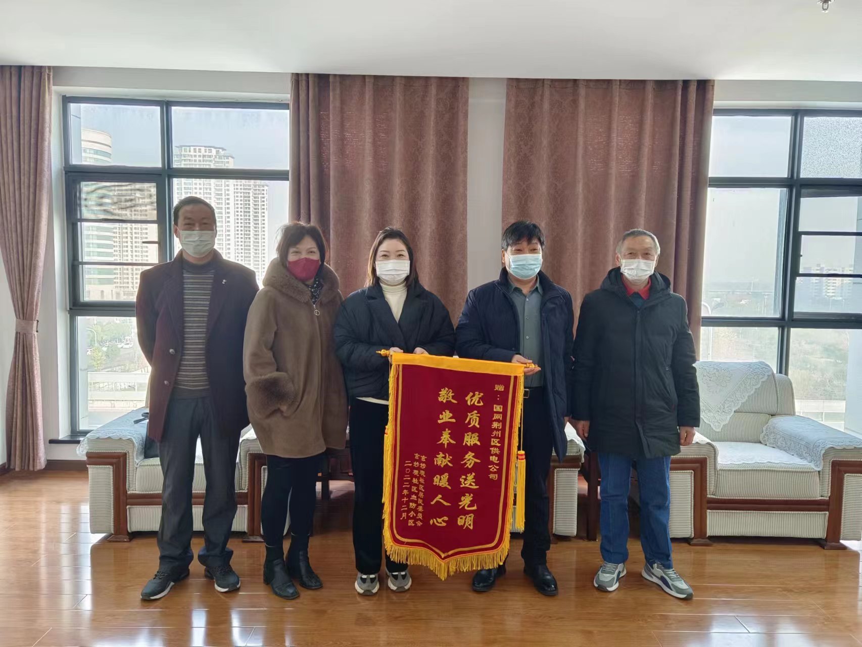 “这次改造后,解决了小区十多年的用电问题,以后家里的空调、冰箱、热水器可以派上用场,春节用电不用愁了”12月13日,湖北荆州市荆州区玄妙观社区血防小区、玄妙观社区居民委员会相关负责人一行专程向公司赠送印有“优质服务送光明 敬业奉献暖人心”的锦旗送到国网荆州区供电公司,感谢公司高效完成转改直项目,确保居民用电无忧。