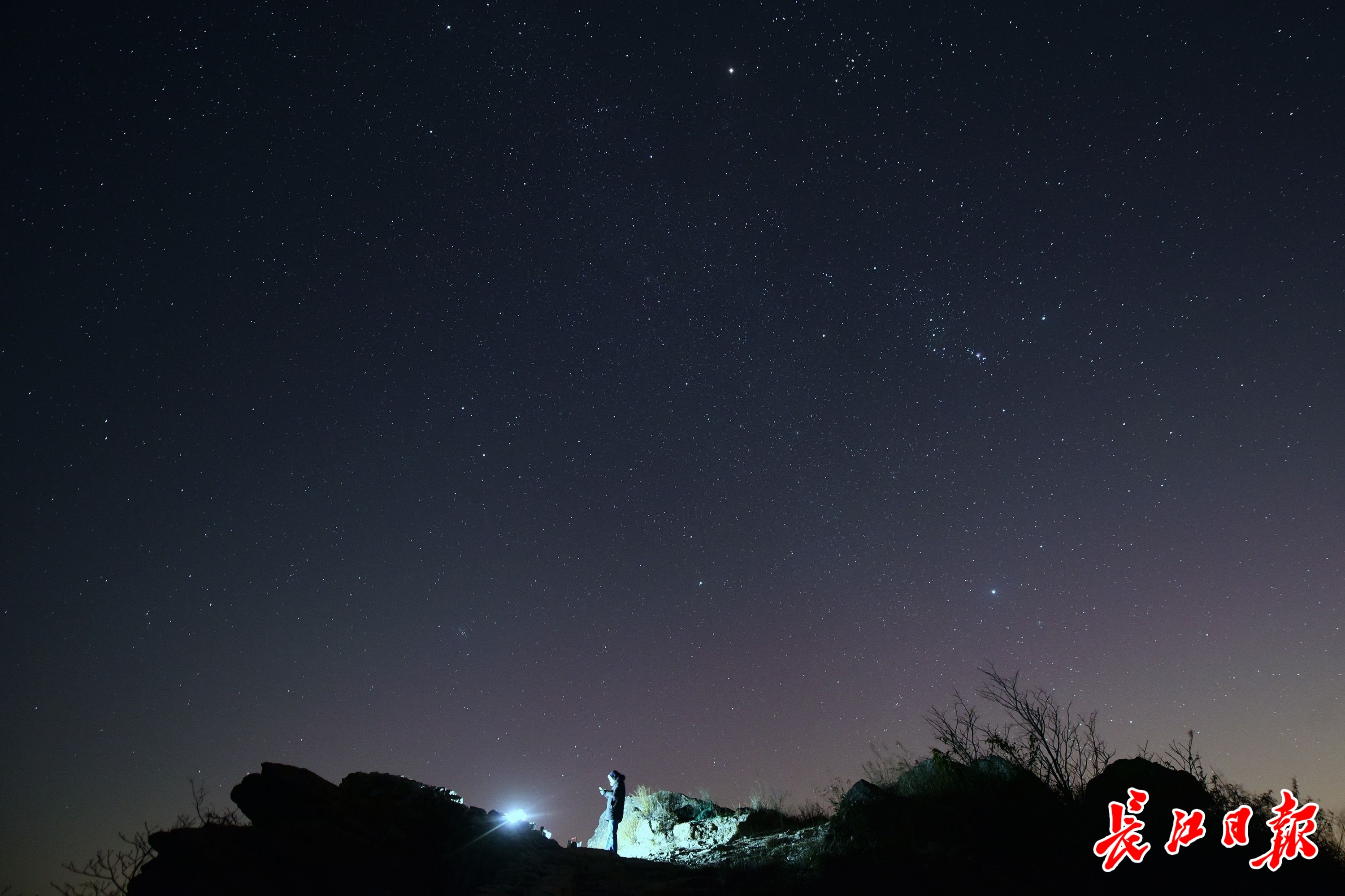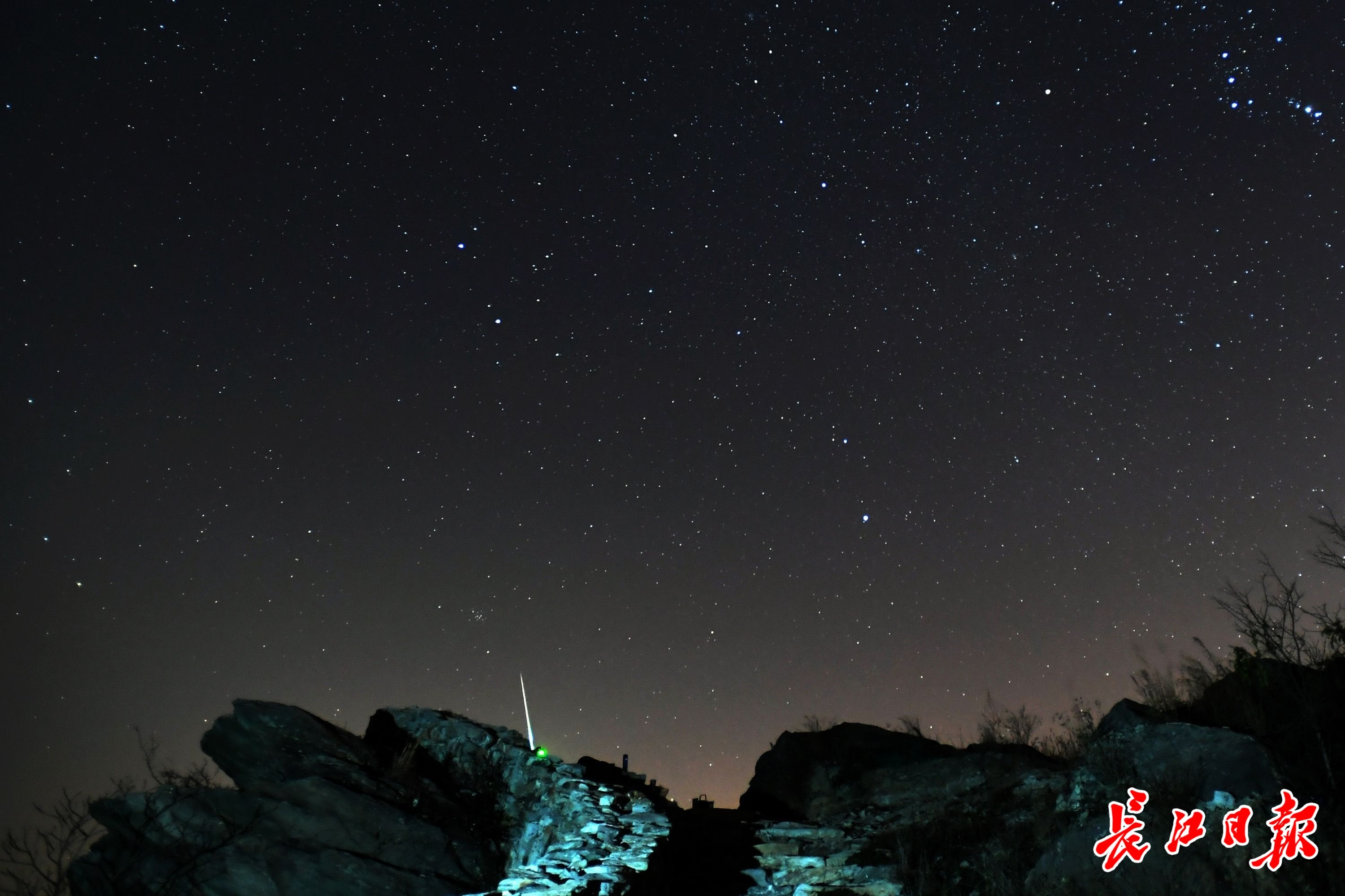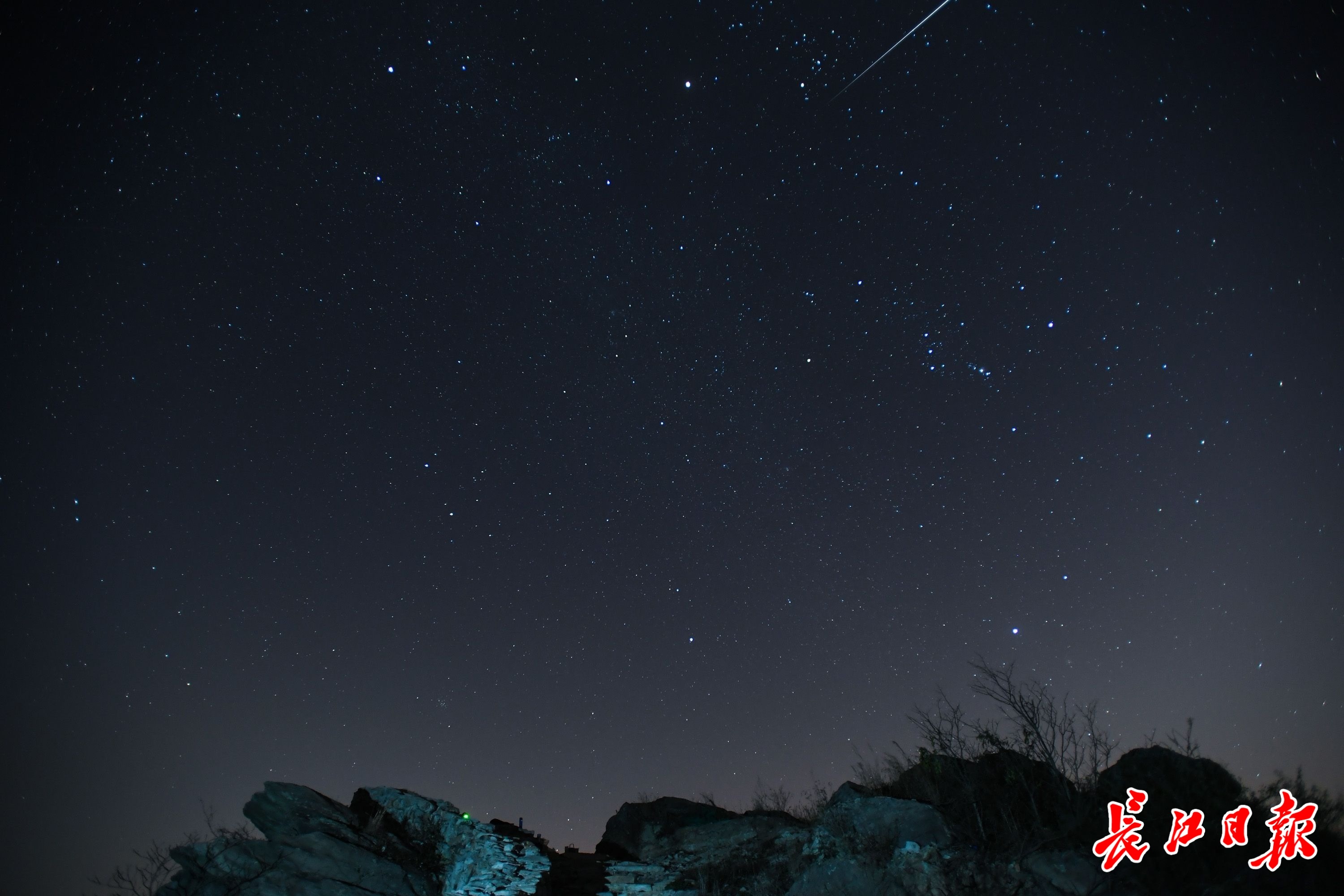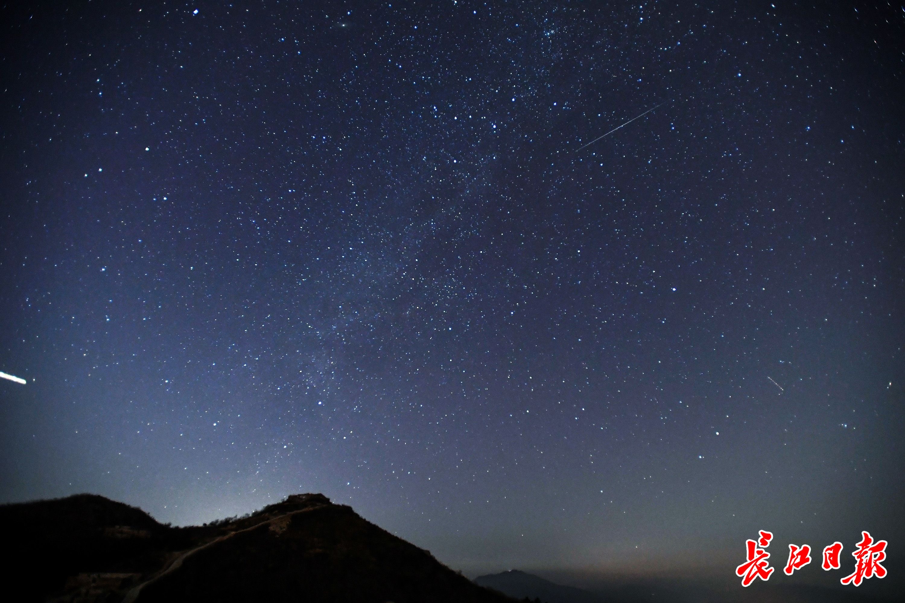 当日,几名星空爱好者从武汉市区出发,来到位于武汉市北郊的黄陂区龙王尖古寨遗址,欣赏流星雨带来的这场视觉盛宴。从20时开始,夜空中不时划过拖着或长、或短尾巴的流星,直至0时左右才明显减少,让爱好者们一饱眼福。