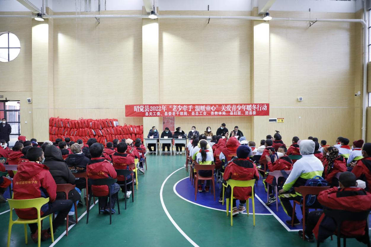 12月15日,昭觉县关工委、县委老干部局、县总工会、县妇联、团县委联合开展“昭觉县2022年‘老少牵手 温暖童心’关爱青少年暖冬行动”走进昭觉县特殊教育学校,为112名残疾儿童送去党和政府的关心关爱。