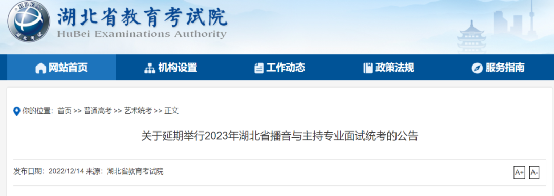 关于延期举行2023年湖北省播音与主持专业面试统考的公告