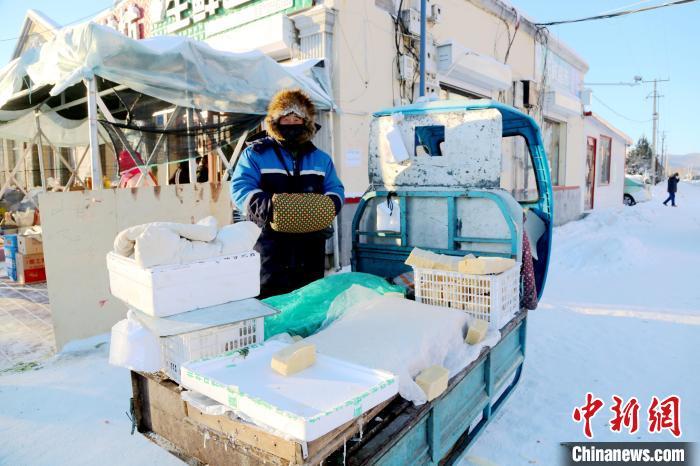 商贩裹着加厚冬装卖豆腐。 冯宏伟 摄