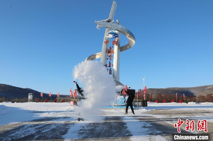 游客在“中国最冷小镇”体验泼水成冰。 冯宏伟 摄