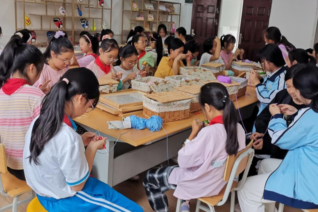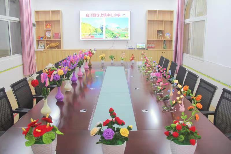 家长的踊跃参与激活了“一池春水”,学校利用周末开放日,为家长提供免费的技术指导,按照市场化的思路,采取“编织+市场经济+订单”的模式开展合作,批量生产“花卉”作品,带动学生家长增收致富,助力乡风文明,助推乡村振兴。