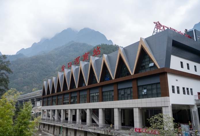 金口河南站位于四川省乐山市金口河区和共安彝族自治乡象鼻村,车站建筑面积约3000平方米,建筑层数为地上三层。