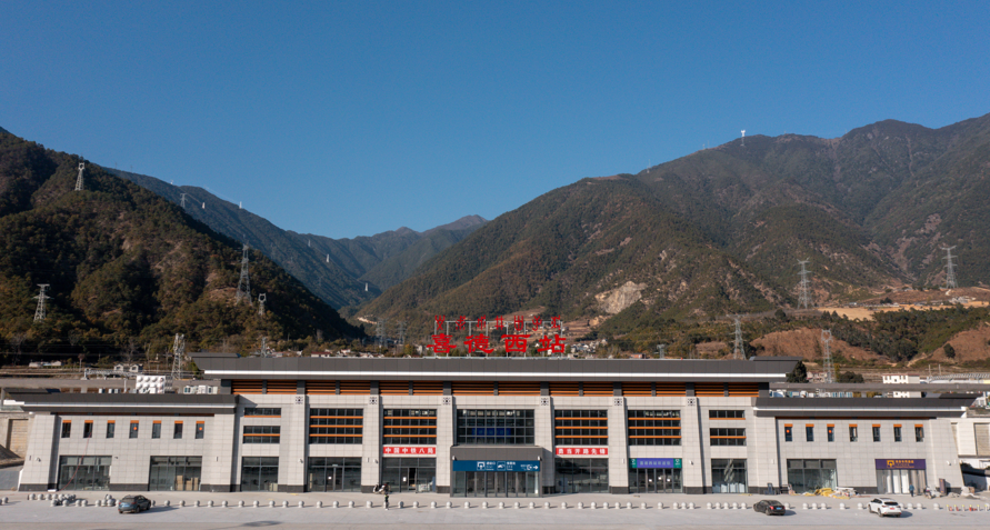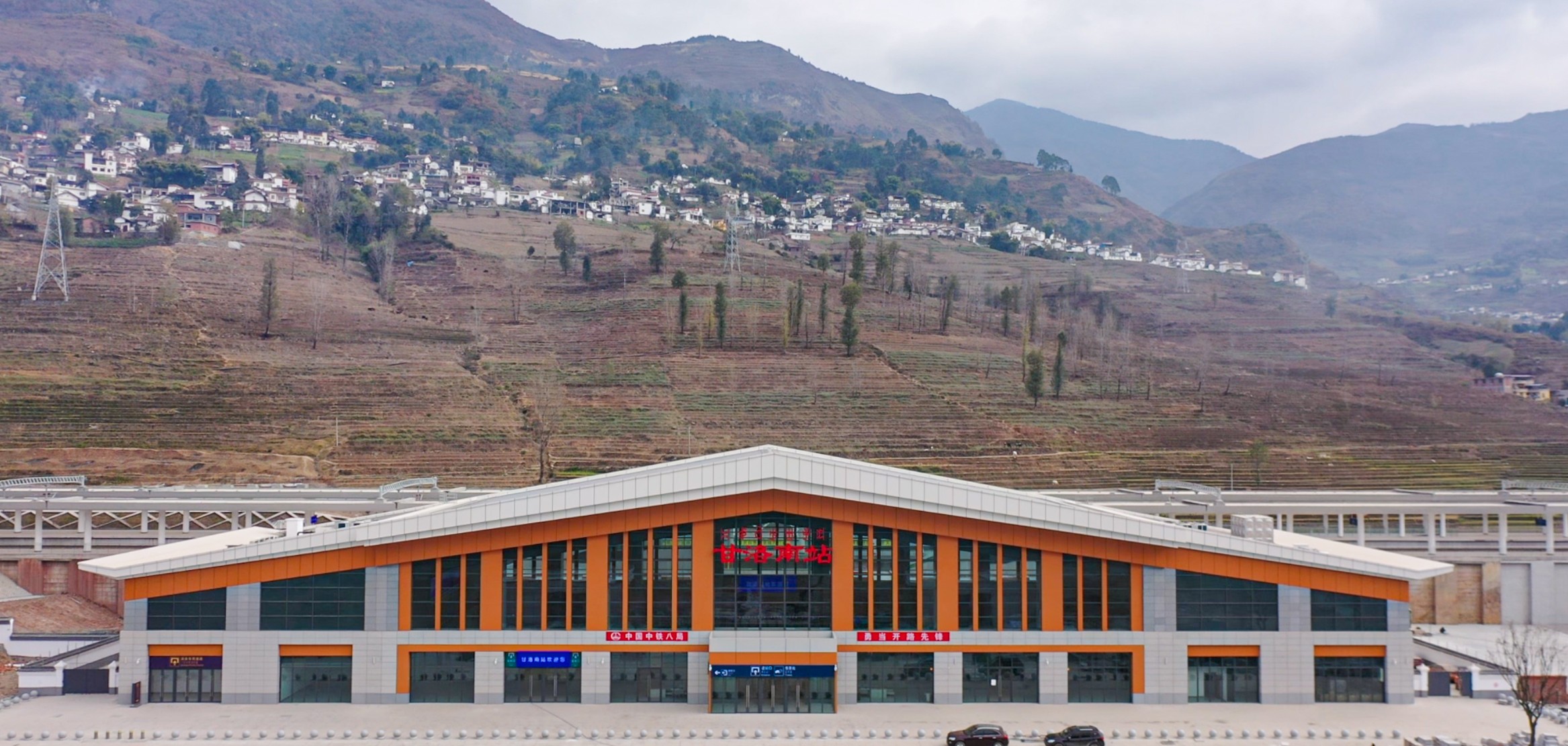 甘洛南站位于四川凉山彝族自治州甘洛县普昌村,建筑层数为地上二层、局部地下一层,站房建筑面积约5000平方米。