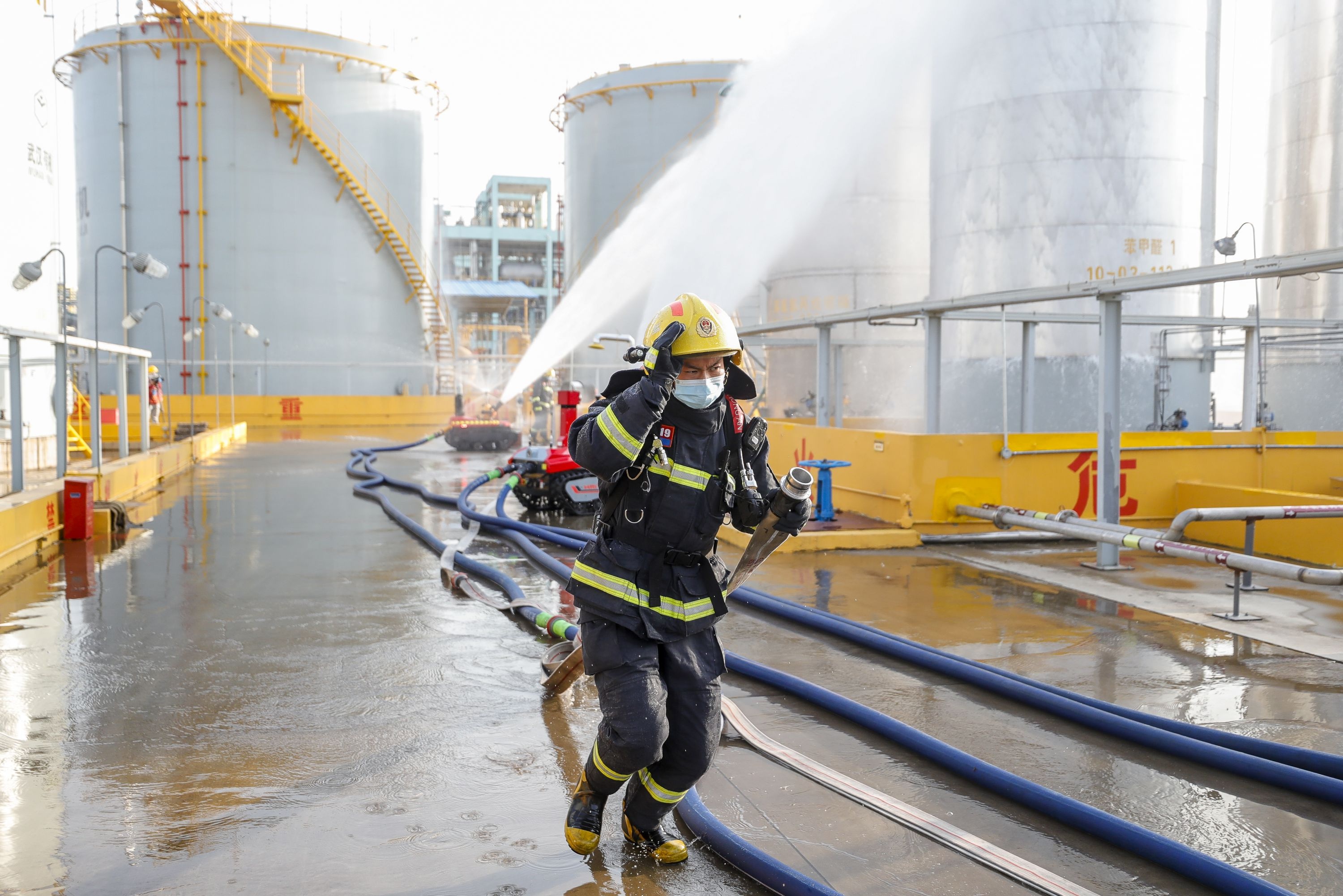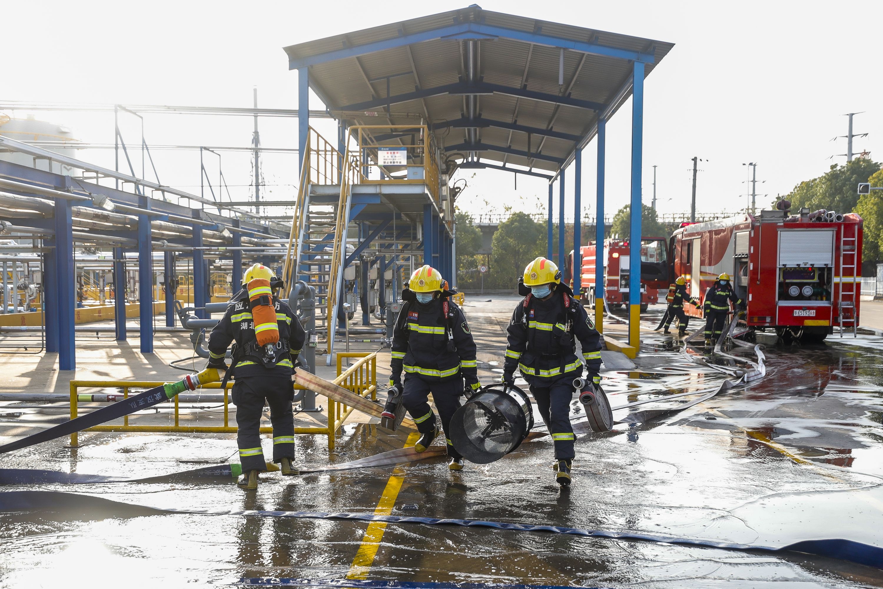 气防人员对周边环境气体持续检测,在浓度及周边温度明显下降后,灭火战斗任务结束。此次演练中国家危险化学品应急救援武汉石化队发挥了重要战斗力,圆满完成演练任务。