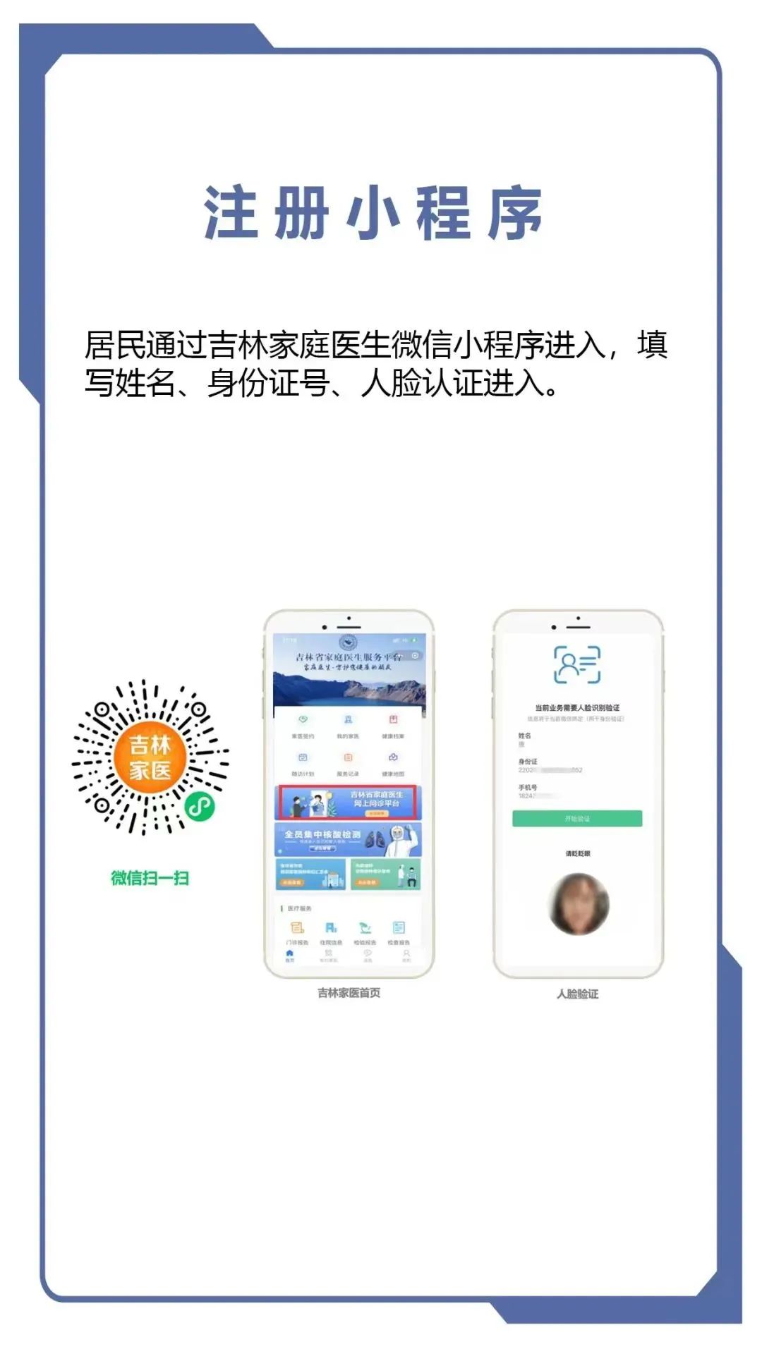 居民先搜索“吉林家庭医生”微信小程序,按照本人身份证号注册、登录。如您之前已注册过,可直接登录。