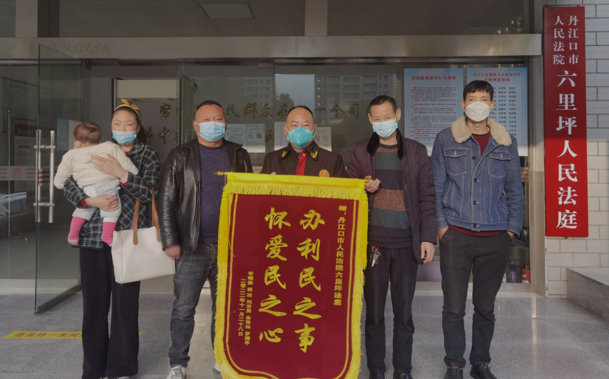 近日记者获悉,在湖北省十堰市丹江口市人民法院六里坪人民法庭门口,几位案件当事人正在向法庭干警赠送锦旗:“感谢你们呀!要不是六里坪法庭,我们恐怕很难这么快就拿到钱!”五位案件当事人在六里坪镇解除封控后就第一时间赶到法庭向承办法官李晓勤赠送锦旗表示感谢。