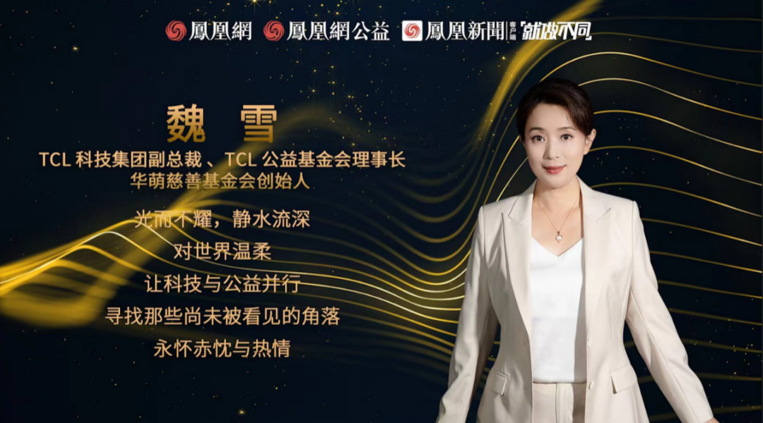 12月15日,凤凰网行动者联盟2022公益盛典举办。TCL科技集团副总裁、TCL公益基金会理事长、华萌慈善基金会创始人魏雪荣获“年度十大公益人物”。
