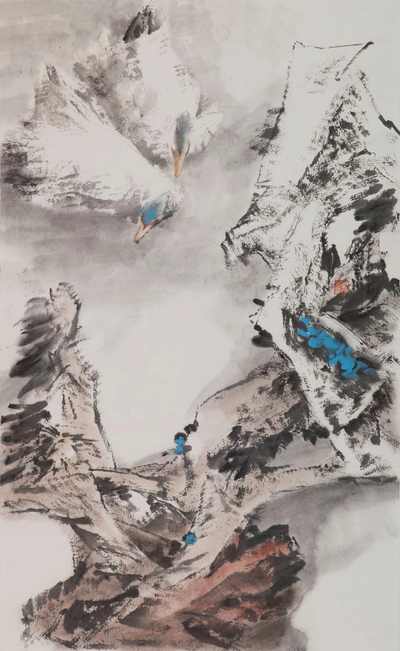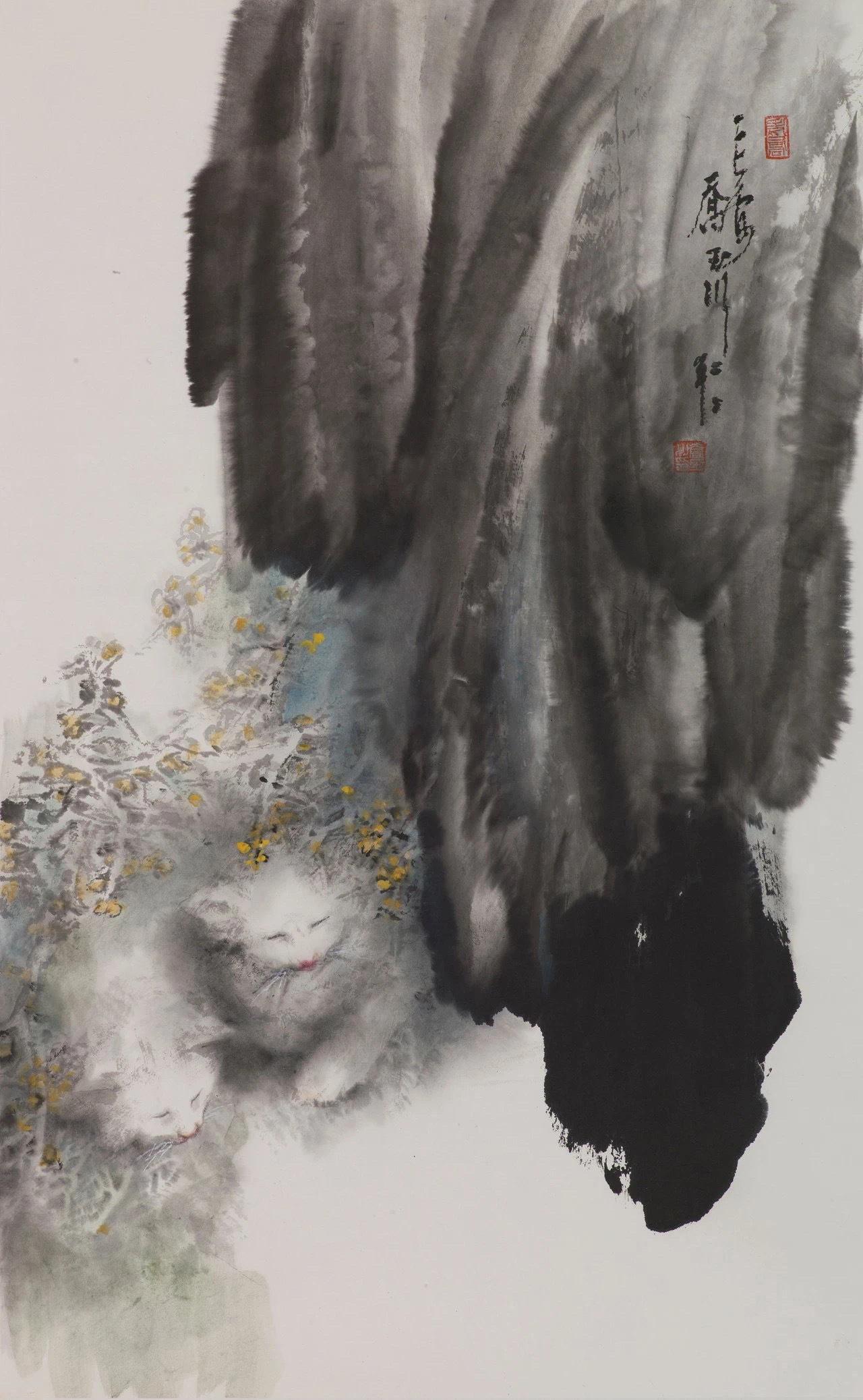乔玉川先生笔下的形象来自于生活,并非传统的文人画,但是他塑造了自己新的心境,非同我们简单再现的现实或者简单的一种描摹,是他自己的心像,这是乔玉川先生的一种人文的诉求。作品体现出的这种关系来自于他对人物画、山水画、花鸟画所有的探索研究,三方面的东西最终呈现在这么一个主题上,这是乔老师绘画的一个语言标识和特征。