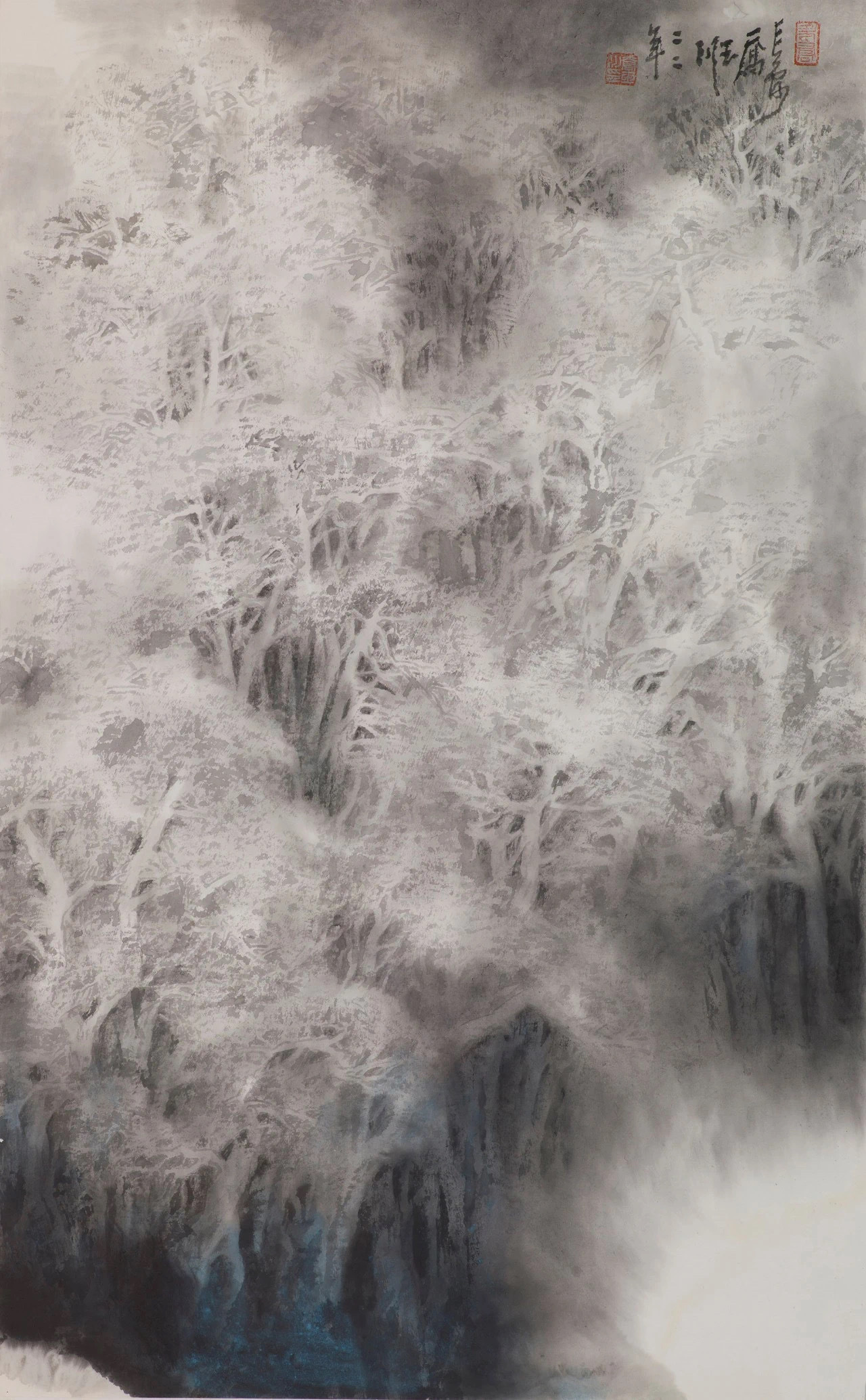 乔玉川先生能够坚持己见,独立地进行创新和探索,这是一个优秀的画家最可贵的地方。他的绘画有非常突出的特色,他对墨法有精深的研究和创新,能够把墨分成很多层次,他的画之所以耐看,原因就在于笔墨的内在结构打动我们。在墨法的研究上,他的作品依虚写实,虚实相生,无画处皆成妙境。至于形而上的层面,他对技法、对道家、对黑白、对中国写意精神都有精深的把握和探求,他的绘画写神、写心、写意味。