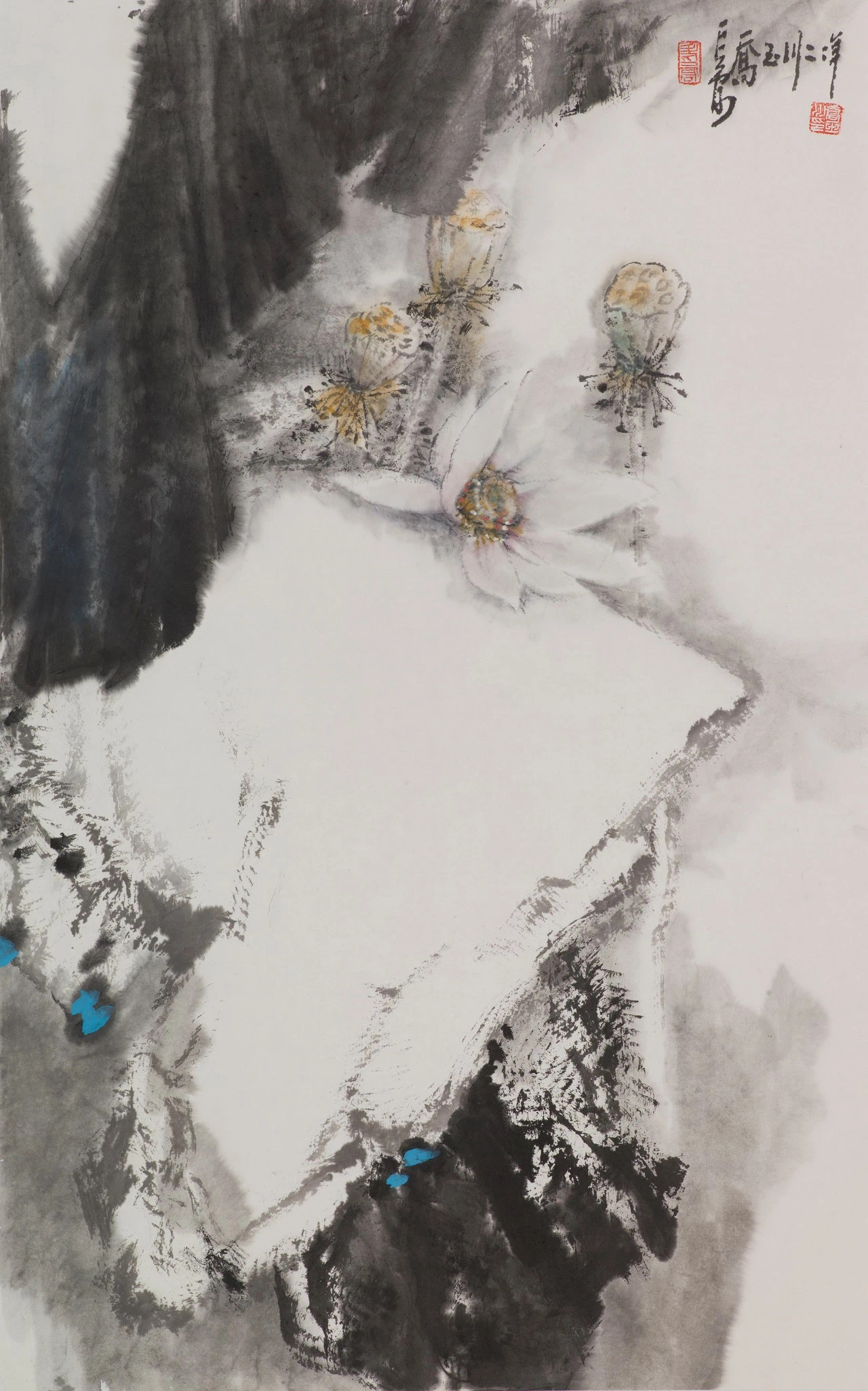 看乔玉川先生的画,第一个印象是以静制动,静的意向在画里面非常突出,静蕴含在笔墨中,但从下笔的力量中能感受到他的动。在画面的形式上我们可以感受到他知其白、守其黑。在绘画当中,可见与不可见就转化为虚拟关系、黑白关系。在这一观念的驱使下,他从形入手,以气贯之,用墨打开,靠韵推出,形成了他独特的笔墨特质。同时,他对笔墨的控制性很强,有一种形在制约,比如画手画眼睛。他在笔墨的意念上面寻求深层的阐发,真正让人回到了笔墨与品性的想象中。