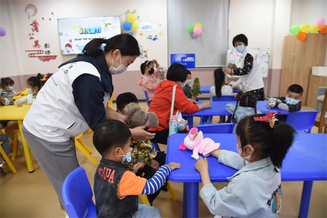 走进位于石岛管理区桃园街道嘉和社区的儿童服务站,宽敞明亮的活动室内,配备了统一制式的学习桌椅,图书、玩具、手工物料等也是一应俱全,每逢周末或者节假日,都会有专业的社工志愿者在这里陪伴孩子们学习、玩耍。