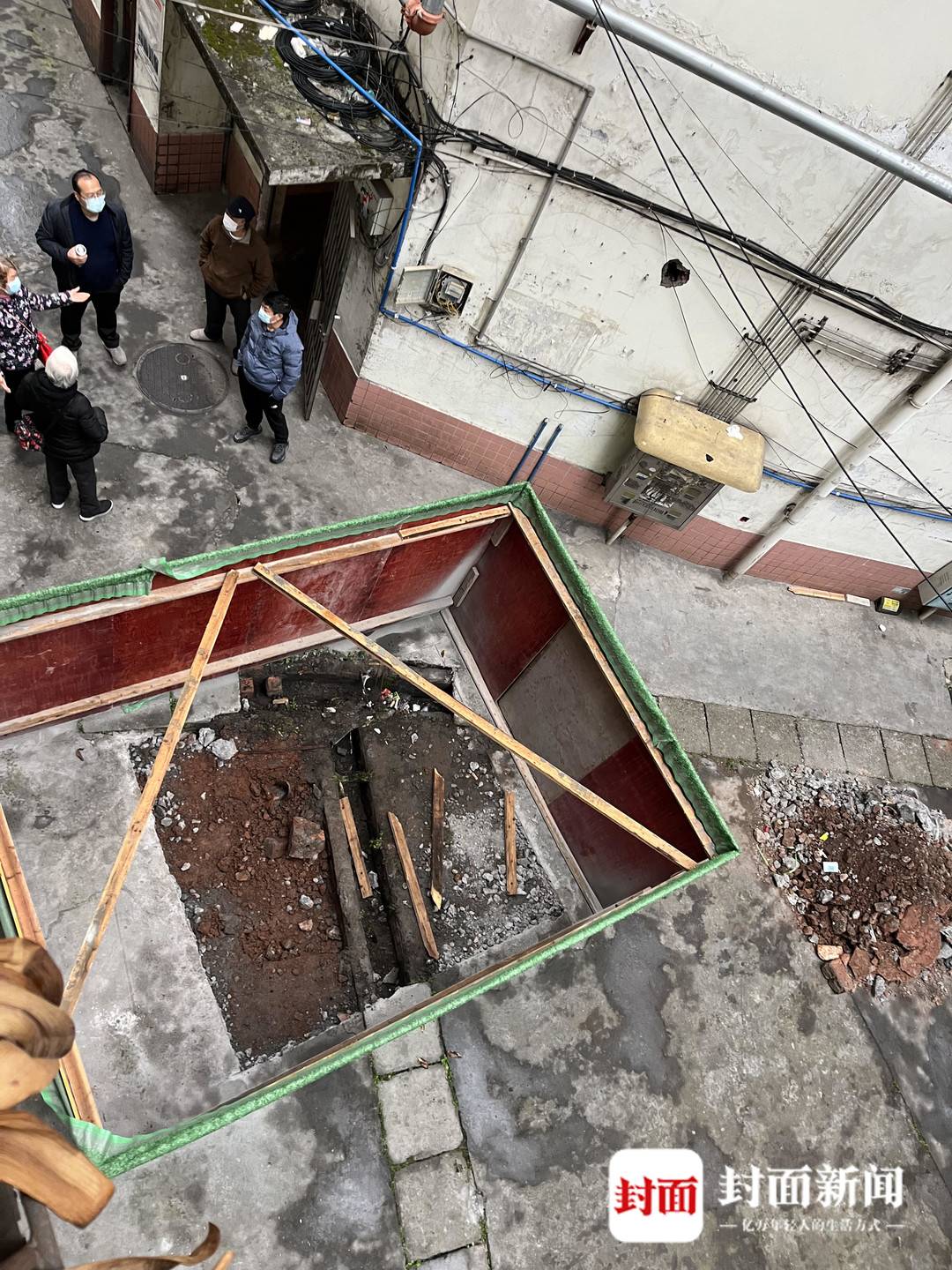 围栏内,水泥地面已经凿开,留下了一个浅坑。