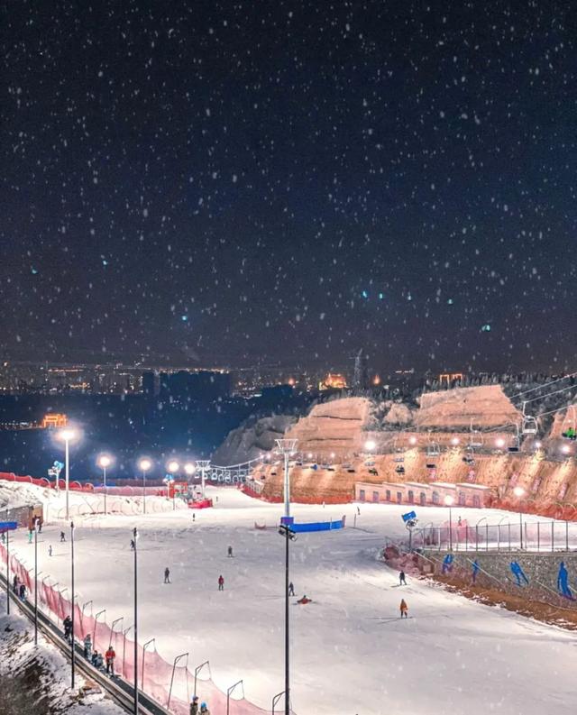 该滑雪场耗资千万元打造雪场夜场的照明灯光