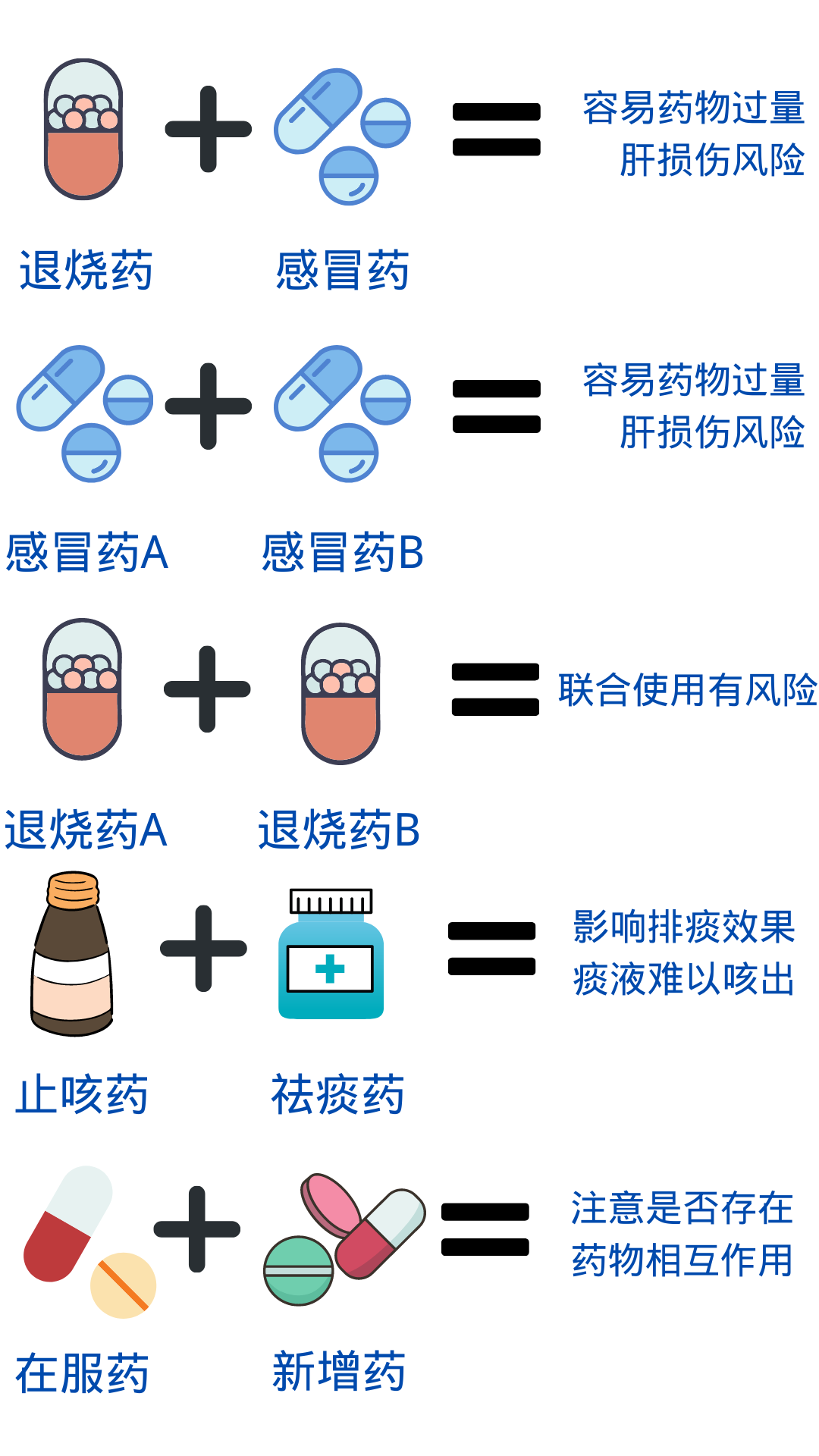“啊,我又有了鼻塞和咽痛症状,那再吃点感冒药……”