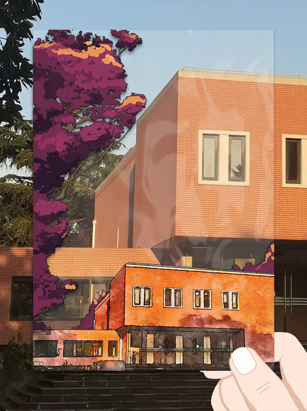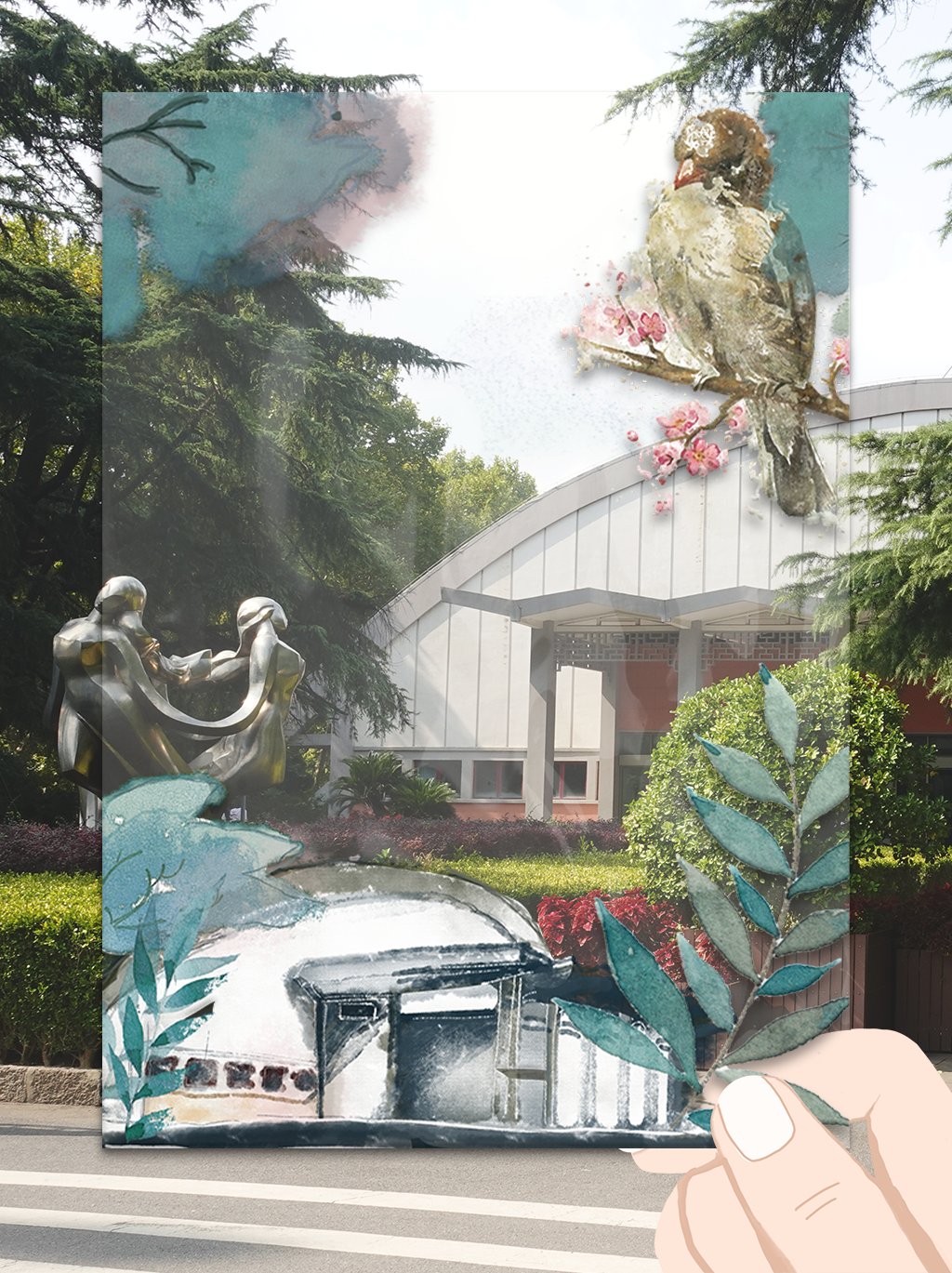 青葱树影、楼宇红墙