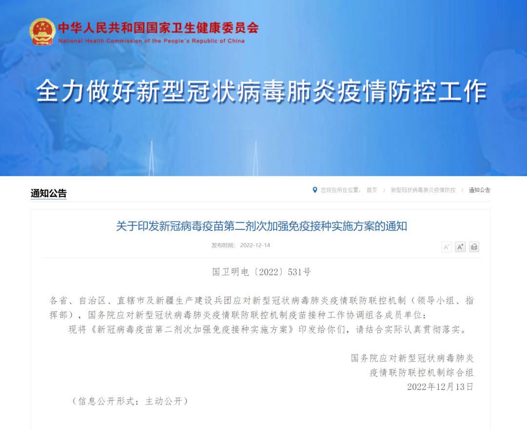 关于印发新冠病毒疫苗第二剂次加强免疫接种实施方案的通知