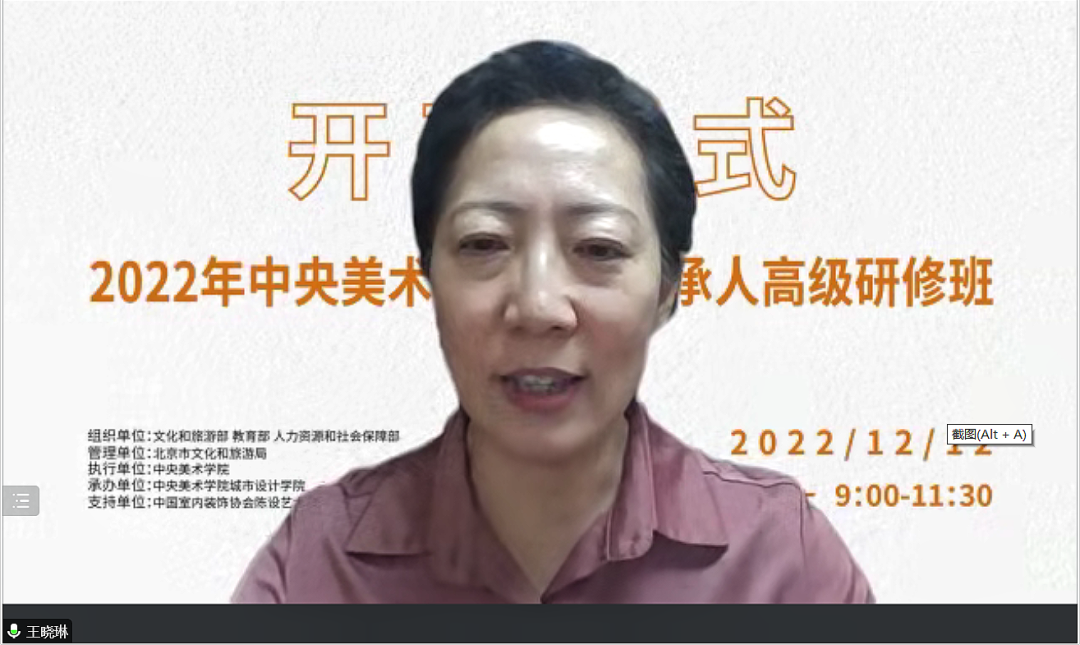 2022年12月12日 ,由文化和旅游部、人力资源和社会保障部共同组织,北京市文化和旅游局指导,中央美术学院主办,中央美术学院城市设计学院承办、中国室内装饰协会陈设艺术专业委员会支持的“格物致知——中式家具制作技艺传承与创新”为主题的中央美术学院非遗传承人高级研修班开班。
