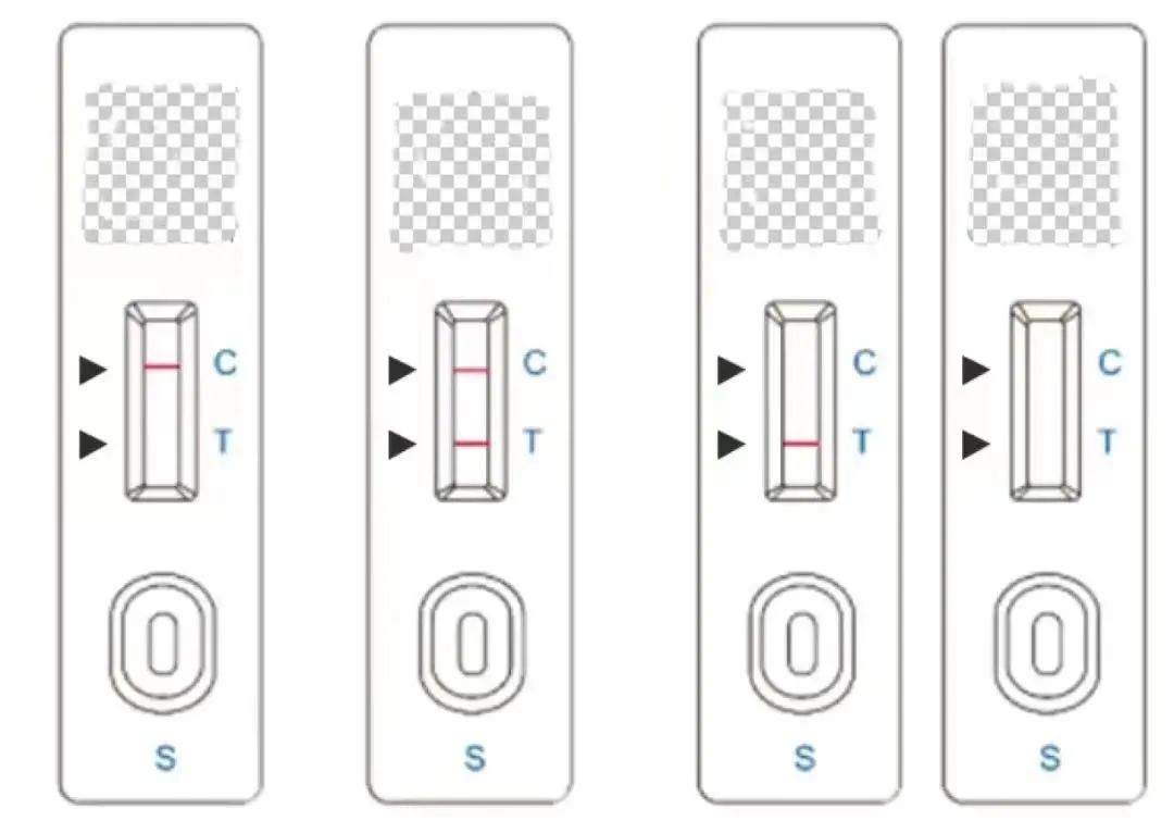C 代表 Control line(控制线),主要用来检验此次测试是否有效。T 则代表 Test line(测试线),用来检测新冠病毒。最下面的 S 就是 Sample hole(样本区),用于滴放样本液。