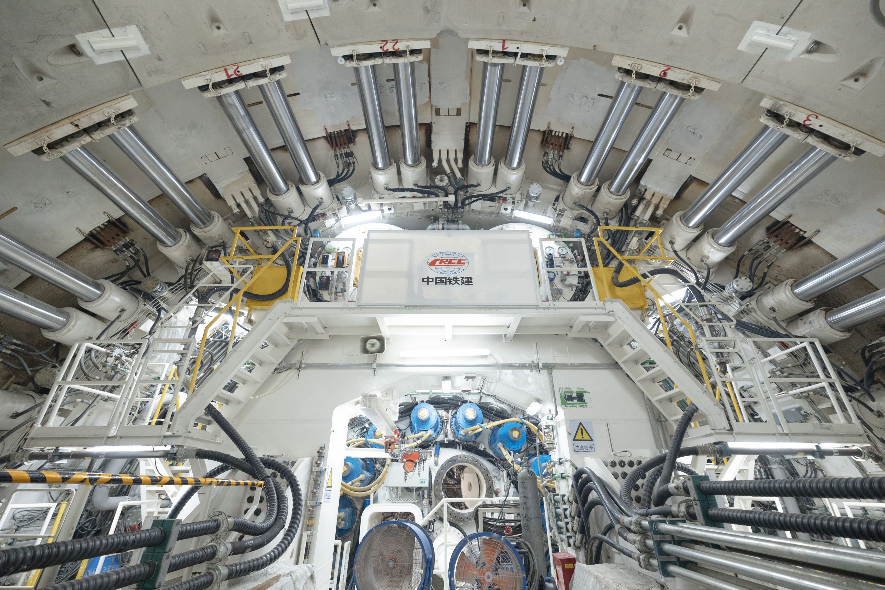 12号线穿越长江的大盾构机内部。通讯员杨启 摄