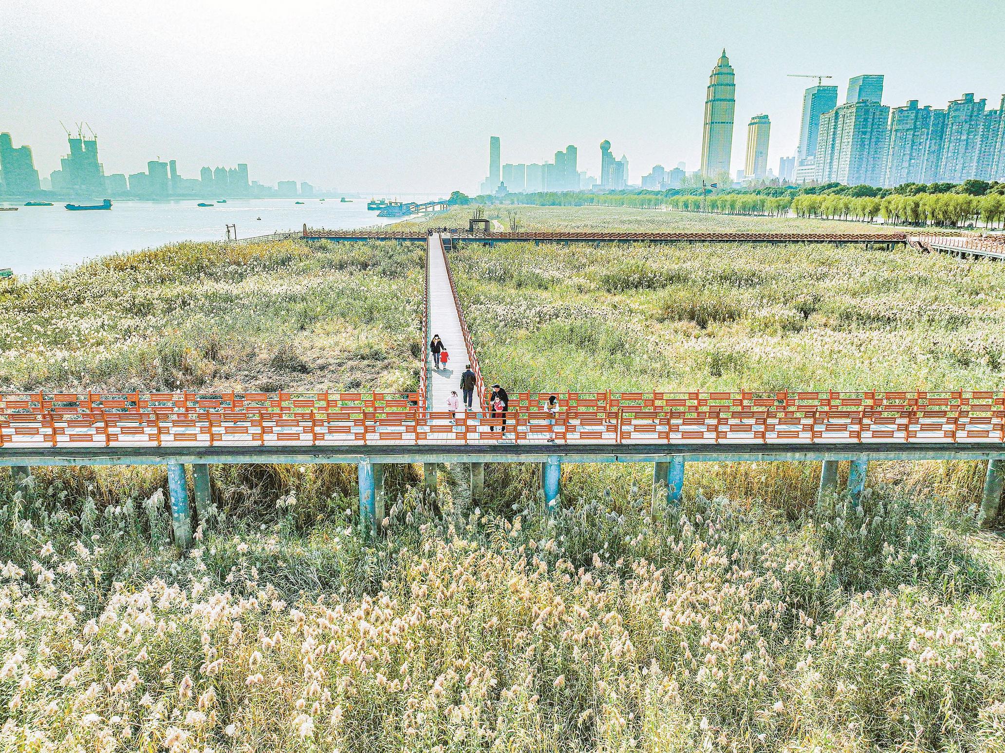 “芦苇晚风起,秋江鳞甲生。”昨日,市民在汉口江滩“荻海絮语”景区,欣赏如雪芦花。楚天都市报极目新闻记者李辉摄