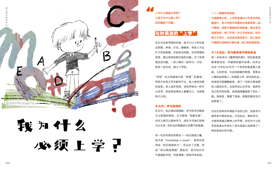 这让我们不免想到王歌老师在《没大没小的为什么》一书中讨论的我为什么必须上学?这一议题,在书中,她不仅回溯了历史上各个时期学习之于人类的意义,提出了上学就一定要去学校吗的疑问,更是展开了对未来学校的想象。