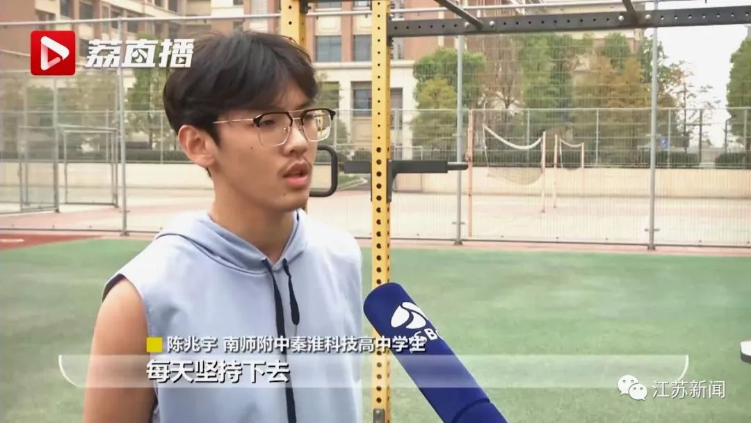 “早晨我会跟同学们出去打篮球,中午晚上锻炼上肢和腿部力量,晚上回家的时候拉一拉肌肉柔韧性。”南师附中秦淮科技高中学生陈珺秋说。