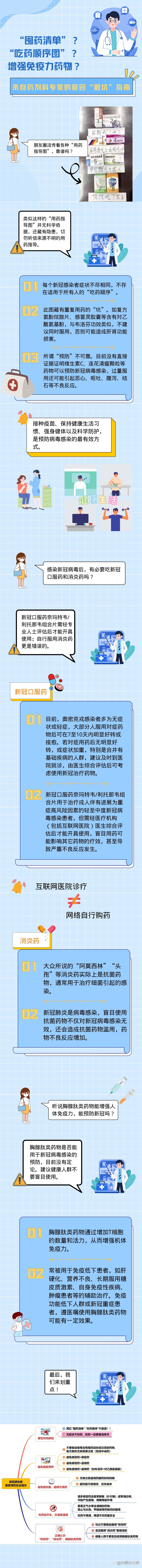 针对网络热门“用药顺序图”、“买不买新冠特效药”、“胸腺肽提高免疫力”、“吃维生素C预防新冠”等群众热议的话题,陆军军医大学陆军特色医学中心的药剂科专家给出了关于新冠居家治疗和健康人群预防感染的“避坑”指南,提醒群众不要听信来源不明的用药指导,也不要盲目采用一些所谓的预防方法。