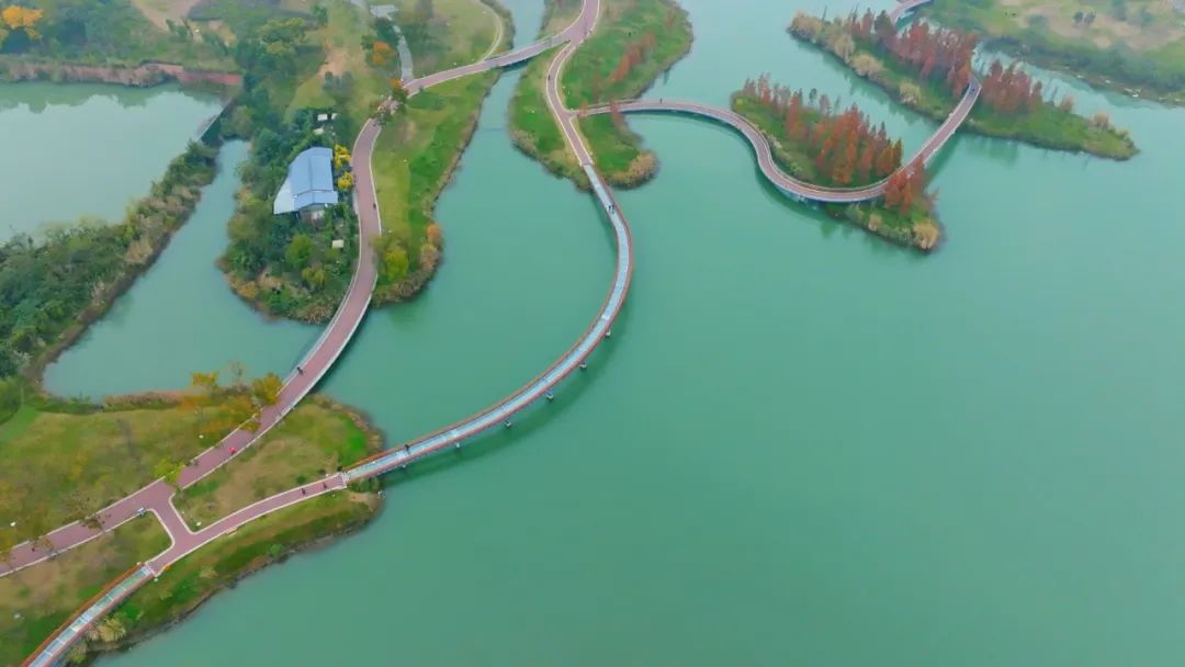 “以前这里就是荒地,还有鱼塘,看起来甚至还有点杂乱,简直没想到现在变成一个这么美的湿地公园。”只要天气不错,家住新津区五津街道红石社区的侯欣怡每天都会和家人一起去家门口的红石涵养湿地公园散个步。“透透气,也锻炼锻炼身体。”像她这样,很多市民现在都能在家门口享受到“城市绿肺”带来的惬意生活。清波粼粼、白鹭飞舞,湖光山色与绿道相映成趣,如画风景让人心旷神怡。