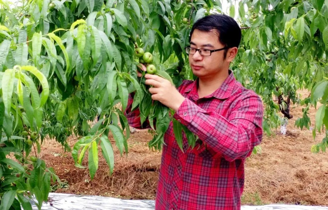 他首先从品质创新上开始,在孝昌县对返乡人才的政策支持下,流转土地作为试验田,并自费到省农科院果茶所学习,在丰山镇建立湖北地方红肉桃资源圃和产学研基地,聚力改良桃品质。