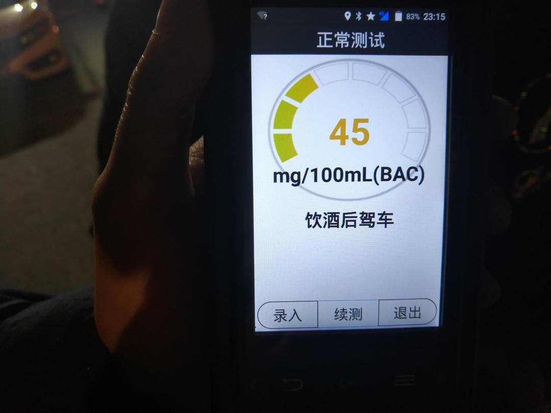 邓某现场经呼吸式酒精检测仪测试,其结果为45mg/100ml,系饮酒后驾驶机动车的行为。执勤交警按照程序规定出具了《公安交通管理行政强制措施凭证》,扣留了邓某的驾驶证,并告知其在规定期限内到二分局做进一步调查处理。
