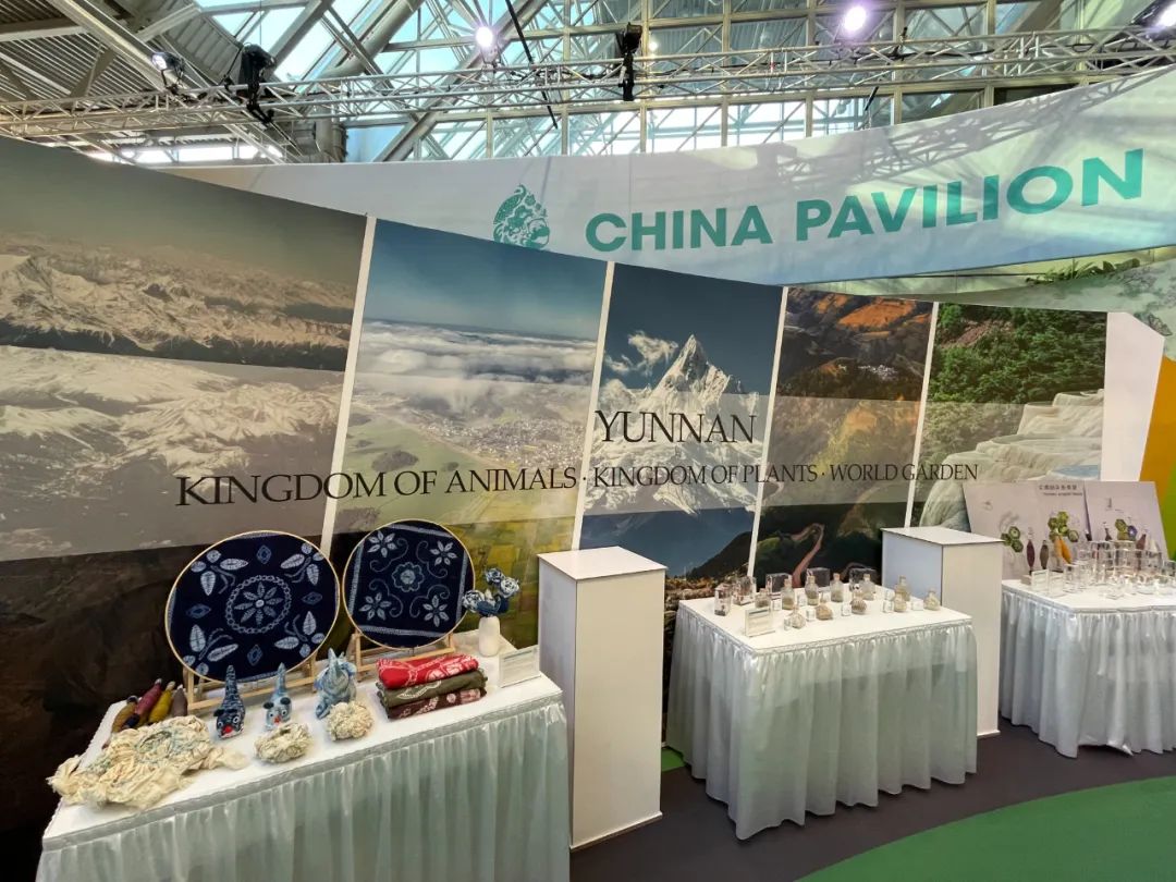 据COP15云南省筹备办常务副主任程伟平介绍,具有浓厚云南特色的彝族“海菜腔”已多次唱响会场,并赢得满堂彩;每天定时进行的普洱茶茶艺表演,吸引了不少与会者驻足观赏与品尝。展品方面,云南展区共展示了永生花、普洱茶、种子银行、染色植物标本、扎染、动植物主题明信片等体现云南生物多样性及文化多样性的特色展品,引起许多嘉宾的兴趣。