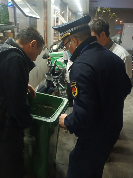 本次检查,以沿街夜宵、烧烤店为主,在日常整治成果基础上,蒲鞋市中队针对夜市的特点专门进行“分类施策 对症下药”,指引各家餐饮企业做好自身垃圾分类、绿色消费等方面的宣传布置,让每一位消费者都能感受到浓厚的绿色消费氛围。同时,为避免形成垃圾分类管理的“死角盲区”,蒲鞋市执法队员采取“昼管+夜查”的方式,除了夜间不定期突击检查,还在白天加强管理,形成全天候的监管模式,切实将垃圾分类工作落到实处。