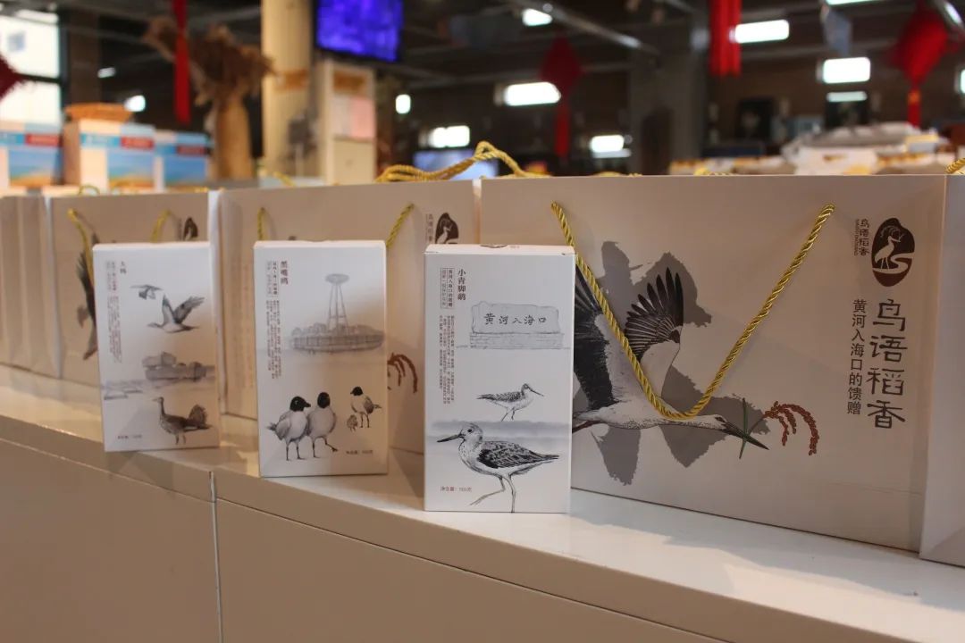 景区超市售卖多款”鸟类主题文创商品”,如“鸟语稻香”大米、黄河口冰箱贴、鸟类玩偶等,前来黄河口冬季观鸟可获得“鸟语稻香”伴手礼大米一份。