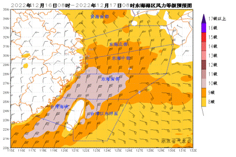 16日夜里至17日我省沿海海面和渔场将有9~11级偏北阵风,内陆平原有6~8级阵风,高山区和江河湖面有8~10级阵风;18日风力减弱,但沿海海面仍有8~9级阵风。