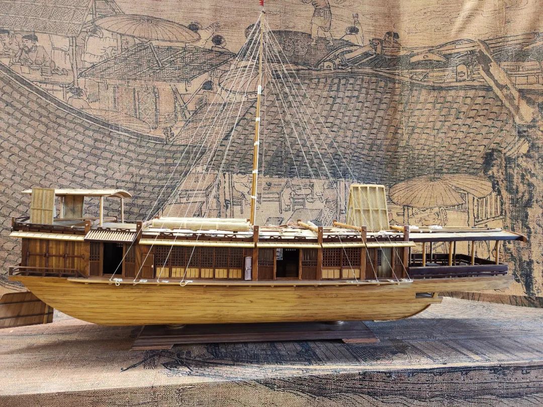 据悉,《清明上河图》里的汴河船,在航运上的分工大体可以分为漕船、客船、货船三种类型,总共24艘,既有共性也有个性,整体造型优美,建造工艺细腻,是我国文化鼎盛时期唐宋的杰出代表。此次,杨生美制作的24艘汴河船包含了8艘客船、10艘漕船、1艘游船、1艘小渔船、3艘货船、1艘客货两用船。